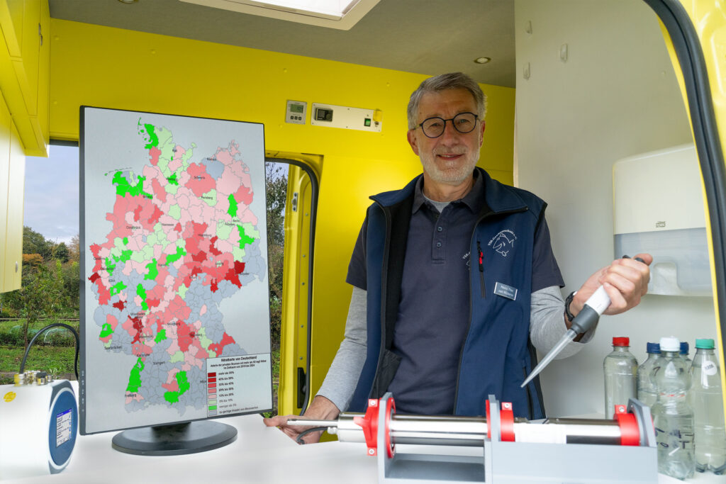 Heinz-Theo ist seit 2024 ehrenamtlich für den VSR-Gewässerschutz aktiv und begleitet das Labormobil bei den Touren durch ganz Deutschland. Von Heinz-Theo van Wickeren und den anderen abgebildeten Personen liegen uns die schriftliche Einverständniserklärungen zum Zwecke der Berichterstattung in Print- und Onlinemedien vor. Alle hier abgebildeten Bilder dürfen für Ihre journalistische Berichterstattung kostenfrei heruntergeladen und benutzt werden. Die Auflösung der Bilder beträgt 300 dpi. Bei der Nutzung der Bilder geben Sie bitte als Quelle „Name des Fotografen /VSR-Gewässerschutz“ an.