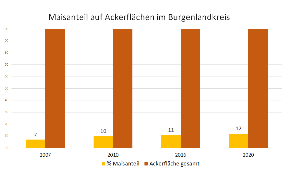 Im Burgenlandkreis wird auf 12 % der Ackerflächen Mais angebaut. Gerade in der Nähe von Biogasanlagen wird besonders viel Mais produziert. Auf den abgeernteten Maisfeldern ohne Bewuchs kommt es zu einer erhöhten Nitratauswaschung, weil der nach der Ernte noch verbliebene Stickstoff durch Regenfälle schnell ins Grundwasser ausgewaschen wird. Der VSR-Gewässerschutz fordert, dass nach der Maisernte Pflanzen den Boden bedecken müssen. Dies ist möglich durch die Aussaat einer Zwischenfrucht nach der Ernte oder einer Untersaat bei der Maissaat. Beides verhindert die Auswaschung der Nitrate im Winter.